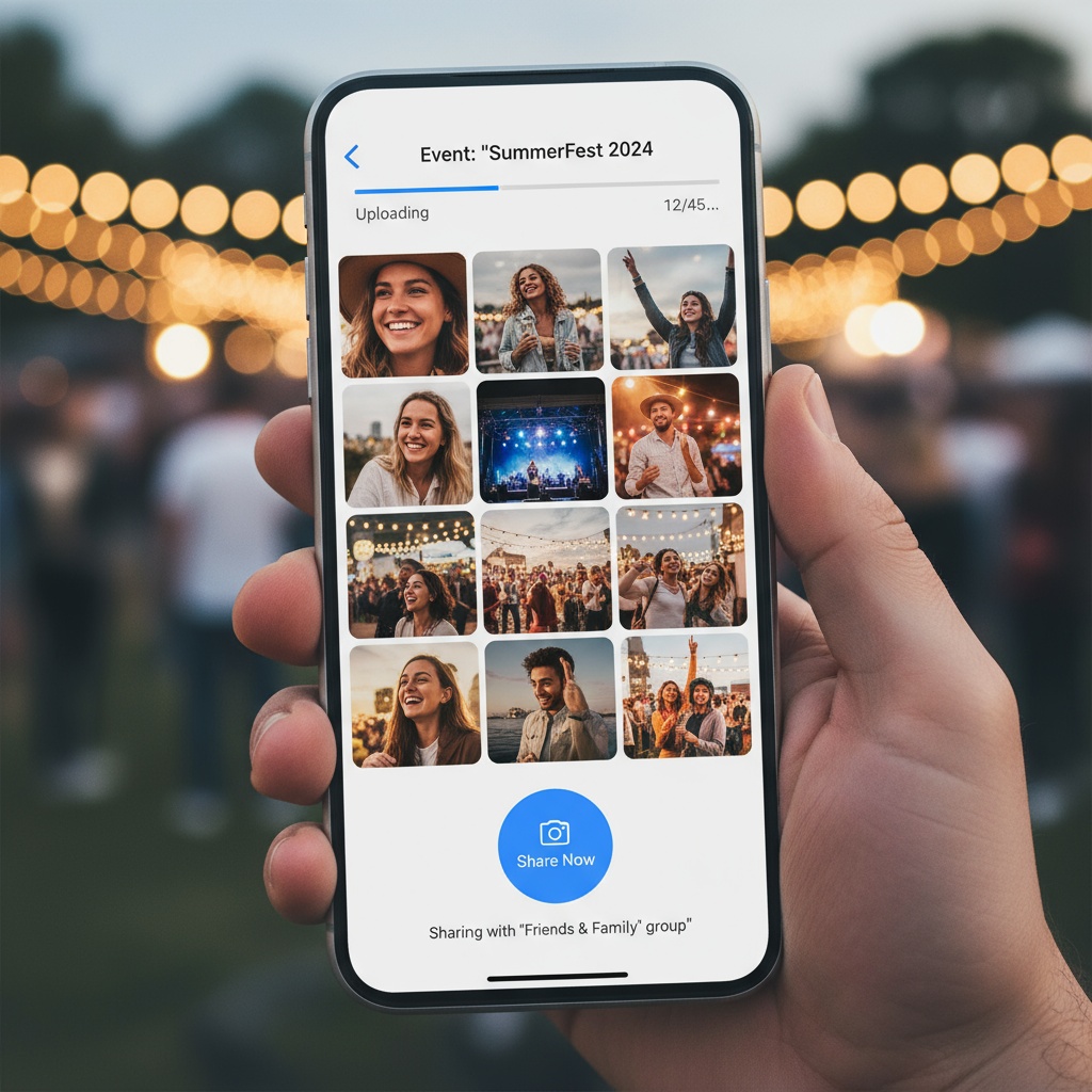 Modern photo booth upload systems unify everything—professional booth shots, photographer selections, and guest smartphone photos—into one instantly accessible gallery where all photos upload in real-time regardless of source. No USB wait, no expiring links, no scattered collections.